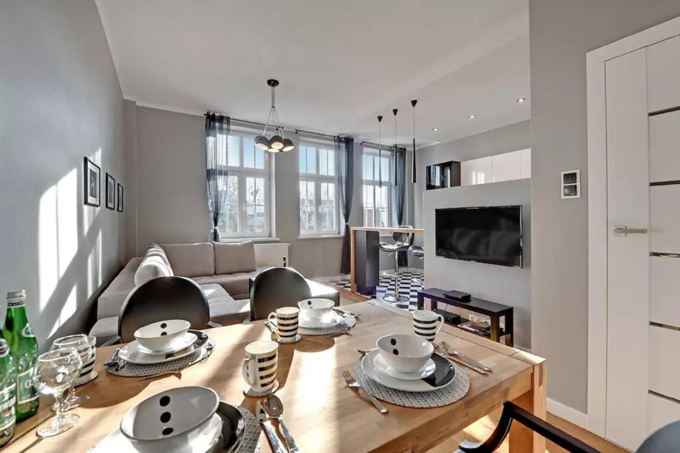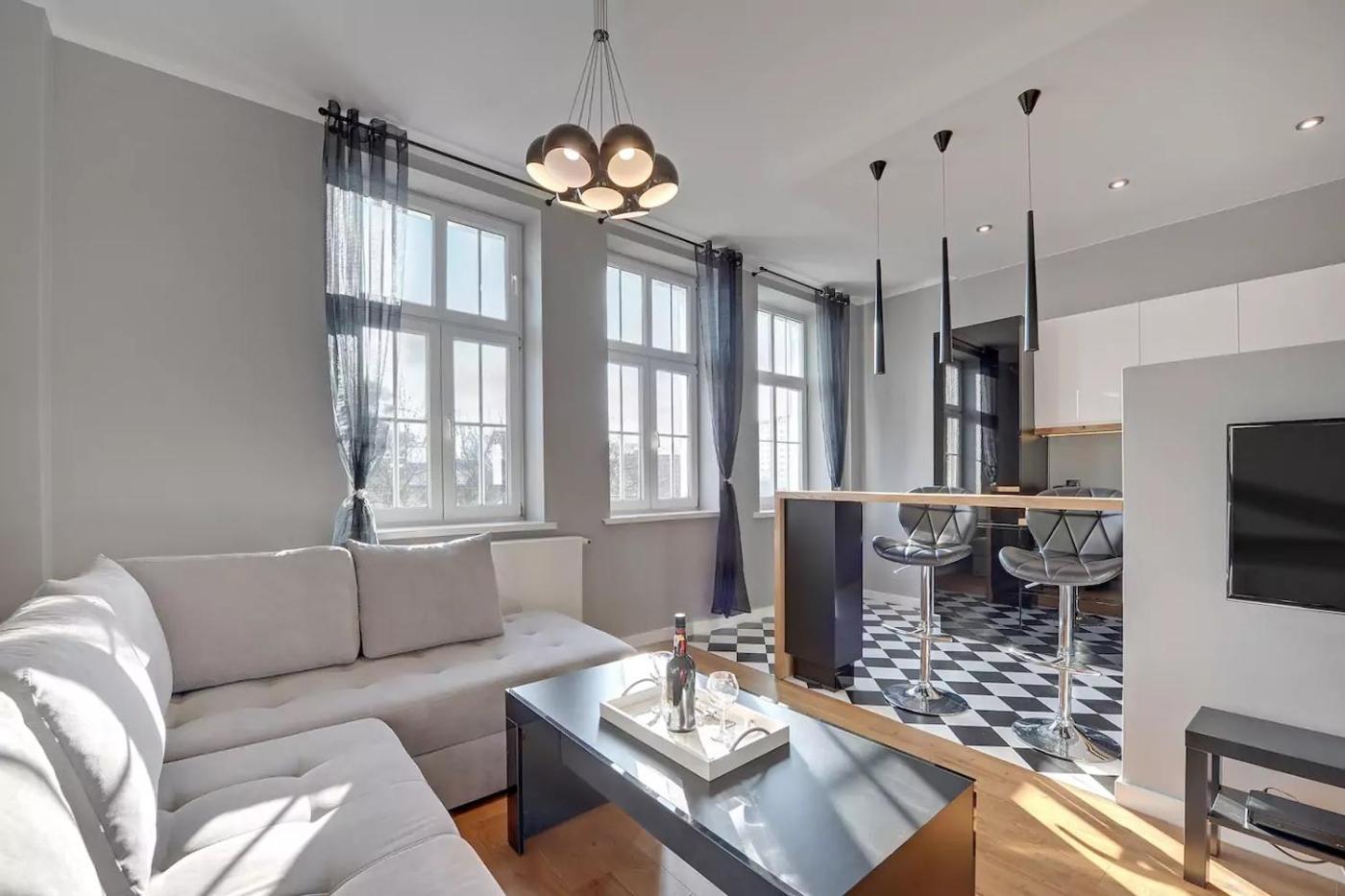 Apartament typu Deluxe. Boasting a private entrance, this apartment comes with 1 living room, 1 separate bedroom and 1 bathroom with a shower and a hairdryer. Guests can make meals in the kitchen that features a stovetop, a refrigerator, a dishwasher and kitchenware. The apartment has parquet floors, a seating area with a flat-screen TV, a washing machine, a coffee machine as well as city views. The unit has 2 beds. Apartament - 5 osobowy. Powierzchnia pokoju ok.: 55 mkw.