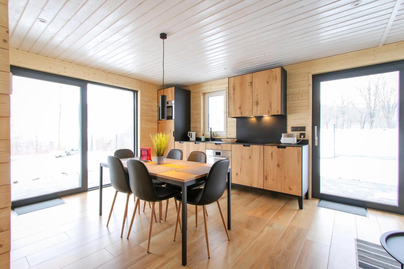 Domek typu Superior. Guests will find a stovetop, a refrigerator, a dishwasher and kitchenware in the well-fitted kitchen. The chalet also offers a barbecue. The spacious chalet provides a washing machine, a private entrance, a terrace with garden views as well as a shared bathroom featuring a shower. The unit offers 5 beds. Domek - 7 osobowy. Powierzchnia pokoju ok.: 78 mkw.
