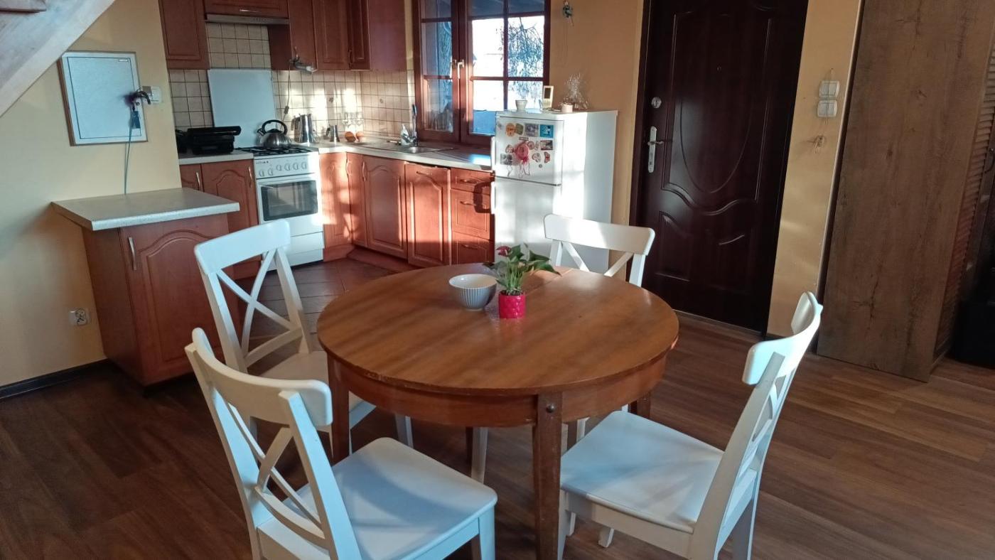 Dom z 2 sypialniami. Guests will have a special experience as the holiday home features a fireplace. Featuring a private entrance, this holiday home also consists of 1 living room, 2 separate bedrooms and 1 bathroom with a shower. The kitchenette is equipped with a refrigerator, kitchenware and an electric kettle. The holiday home provides soundproof walls, a seating area, a wardrobe as well as a terrace with garden views. The unit offers 2 beds. Dom wakacyjny - 4 osobowy. Powierzchnia pokoju ok.: 26 mkw.