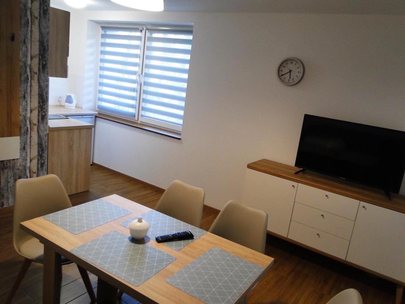 Apartament. Featuring a private entrance, this apartment consists of 1 living room, 2 separate bedrooms and 1 bathroom with a bath or a shower and a hairdryer. Meals can be prepared in the kitchenette, which is equipped with a stovetop, a refrigerator, kitchenware and a microwave. The apartment provides a flat-screen TV, soundproof walls, a wardrobe, an electric kettle as well as garden views. The unit offers 4 beds. Apartament - 4 osobowy. Powierzchnia pokoju ok.: 27 mkw. ;
