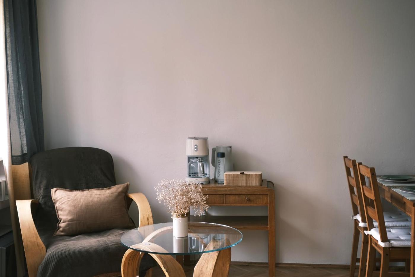 Apartament z 1 sypialnią. This apartment comes with a kitchenette, a seating area, 1 separate bedroom and 1 bathroom with a bath and a hairdryer. Meals can be prepared in the well-fitted kitchenette, which features a stovetop, a refrigerator, kitchenware and a microwave. Among the room amenities are a washing machine, a tea and coffee maker and a dining area as well as garden views. The unit has 1 bed. Apartament - 2 osobowy. Powierzchnia pokoju ok.: 25 mkw.