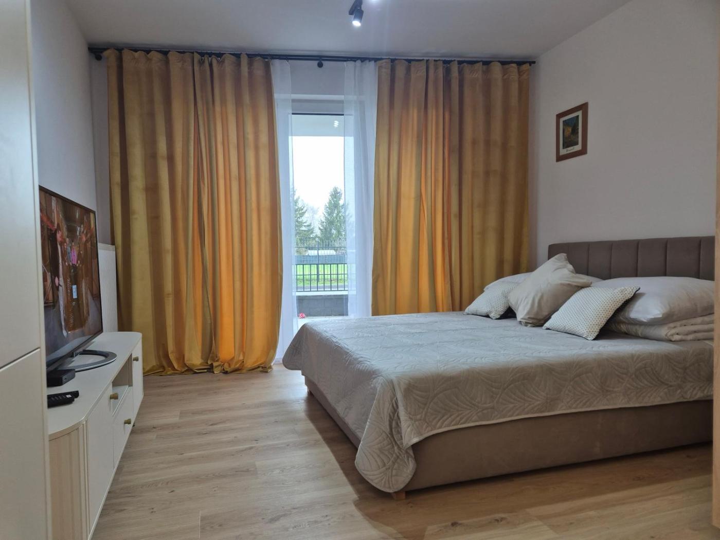 Apartament z 1 sypialnią. Guests can make meals in the kitchenette that comes with a stovetop, a refrigerator, a dishwasher and kitchenware. The apartment offers a washing machine, a private entrance, soundproof walls, a flat-screen TV with satellite channels, as well as garden views. The unit offers 2 beds. Powierzchnia pokoju ok.: 38 mkw.